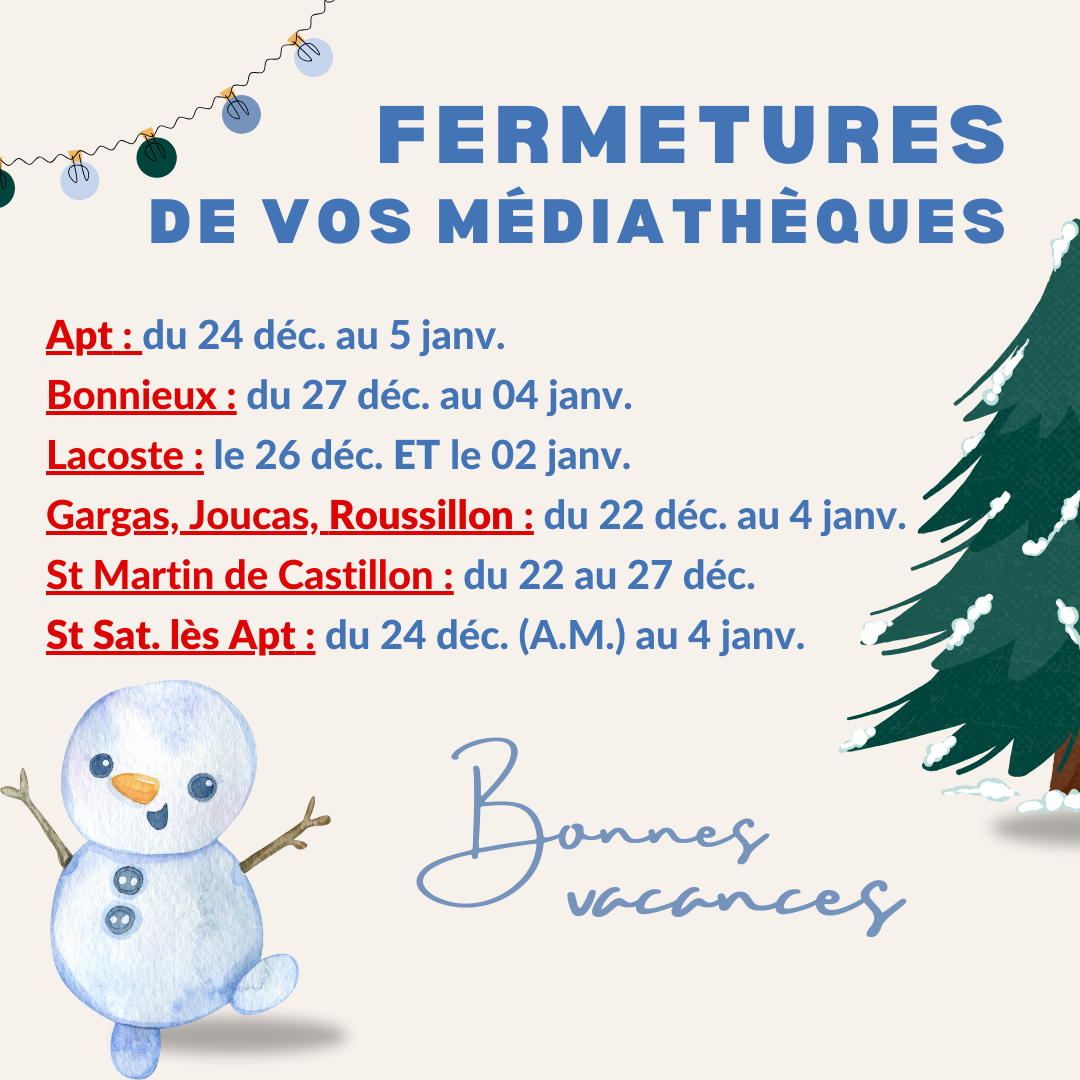 Fermeture du jeudi 17 décembre 2024 au 07 janvier 2025.